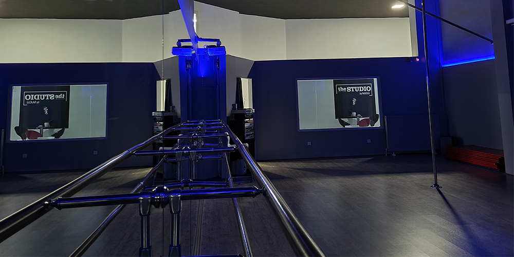 Ana salonumuzun iki bölümünde de kolayca yerleştirilebilir Pole Dans direkleri bulunmaktadır. Kaldırıldığında tavanda dekor vazifesi yapmaktadır. Salonumuz tavanında ayrıca Aerial Yoga, Anti Gravity Yoga, Bungee Fitness, Loop branşlarını yapmaya hizmet eden yüksek kalite paslanmaz çelikten yapılmış tavan barları bulunmaktadır. Tavan yüksekliğimiz 4,5 metredir.