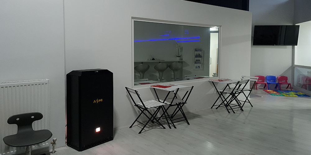 Pandemi döneminde çok büyük rol taşıyan hava temizleme cihazlarından Fiberli markasını kullanmaktayız. UV-C sistemi ile bakteri ve mikrop temizliği yapan cihaz 250m2 salonlar için uygun olup 140m2 buyuklugundekı salonumuza misli misli yetmektedir. Sistem aynı zamanda ozon hava temizliği de yapmakta olup salonumuzu olabildiğince zararlı bakterilerden arındırmaktadır. Salonumuz girişinde aynı zamanda ameliyathane girişlerinde kullanılan yapışkanlı paspaslar bulundurulmaktadır.